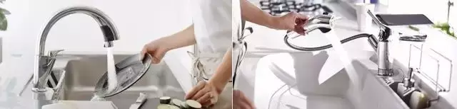 感应龙头减少向前打开开关的次数,并有效节水;普通抽拉龙头的成本则更低,对于水槽内部清洗能够更加方便,减少操作负担。泡沫出水方式能够极大化地提供洗污能力,节水的同时减少洁净的劳度。