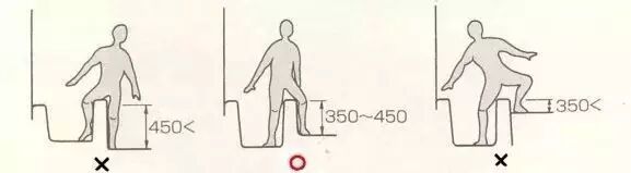 大家都知道起身的时候:手撑着的力气需要支撑整个身体,而由顺手处的扶手拉的过程则省力许多(可以自己做个试验),所以扶手的位置应设定在离马桶15~30mm的墙壁上。